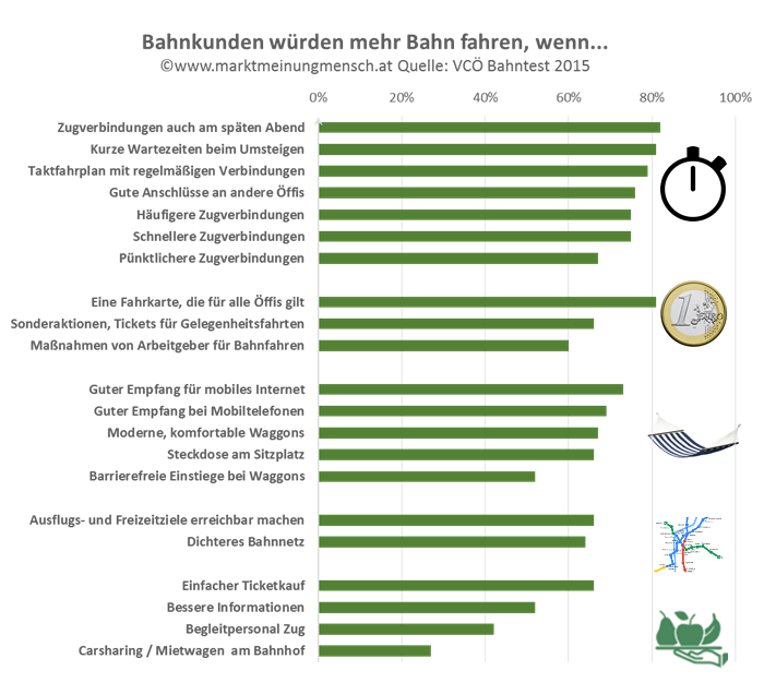 Bahnkunden wünschen sich Verbesserung bei den Fahrplänen und bei mobilen Internet. Kosten sind zweitragig