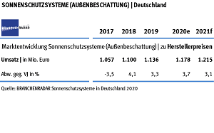 Marktentwicklung Sonnenschutzsysteme in Deutschland 2017 bis 2021