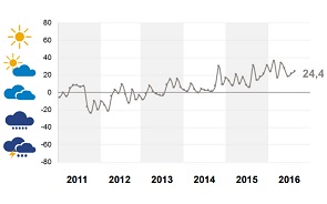 Die Verunsicherung nach dem Brexit-Votum in Großbritannien ist anscheinend auch in Österreich bei den Konsumentinnen und Konsumenten angekommen. Trotz passabler Wachstumsraten gehen die österreichischen Verbraucher von einer etwas schwächeren wirtschaftlichen Entwicklung in den nächsten Monaten aus. Die Konjunkturerwartung steigt zwar langsam wieder an. Allerdings lag sie im September mit -7,2 Punkten noch deutlich unter dem langjährigen Durchschnittwert von 0 Punkten und somit unter der Grenze, ab der die Verbraucher mit Wirtschaftswachstum rechnen. Seit Juni ist sie damit um knapp 1 Punkt, seit September letzten Jahres immerhin um 12,6 Zähler gestiegen. Im August erreichte der Indikator mit -4,2 Punkten den höchsten Wert seit Juli 2014.