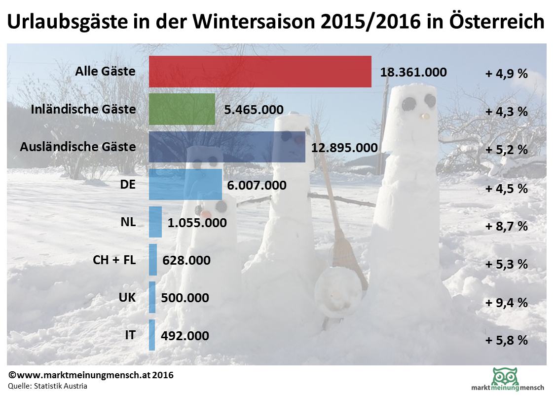 Die österreichischen Beherbergungsbetriebe konnten in der Wintersaison 2015/2016 mit einem Plus von 4,9% einen neuen Höchstwert von 18,36 Mio Gästen begrüßen ein sattes Plus von 4,0 Prozent. Die Zukunft des Wintertourismus sollte dennoch nachhaltig übedacht werden (VIDEO).