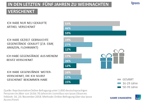 Mehr als ein Drittel der Deutschen verschenkt zu Weihnachten gebrauchte Präsente. Ipsos befragte die Deutschen zur Bedeutung gebrauchter Weihnachtsgeschenke.