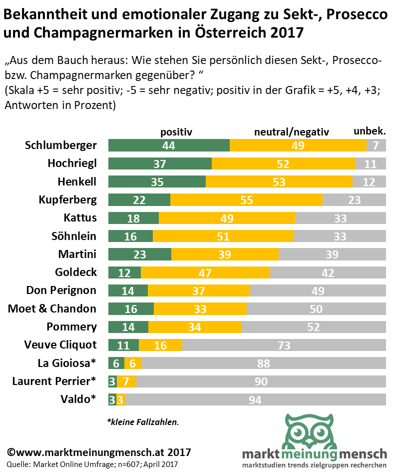 Bekanntheit und emotionaler Zugang zu Sekt-, Prosecco und Champagner-Marken in Österreich 2017