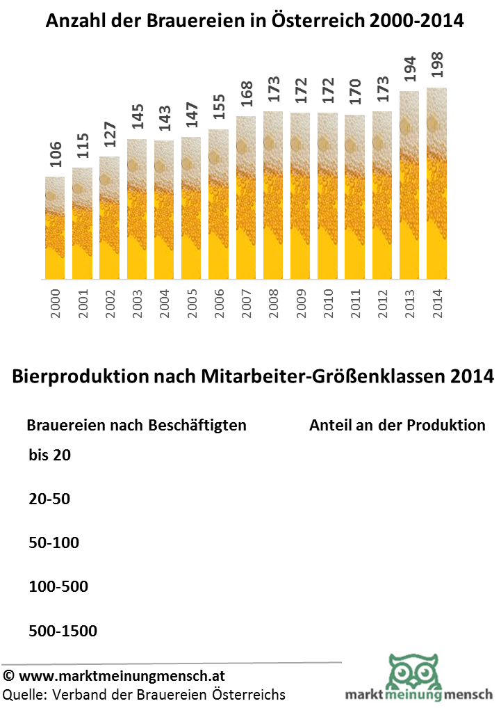 Infografik zur Statistik der Brauereien und der Bierproduktion in Österreich nach Betriebsgrößen-Klassen