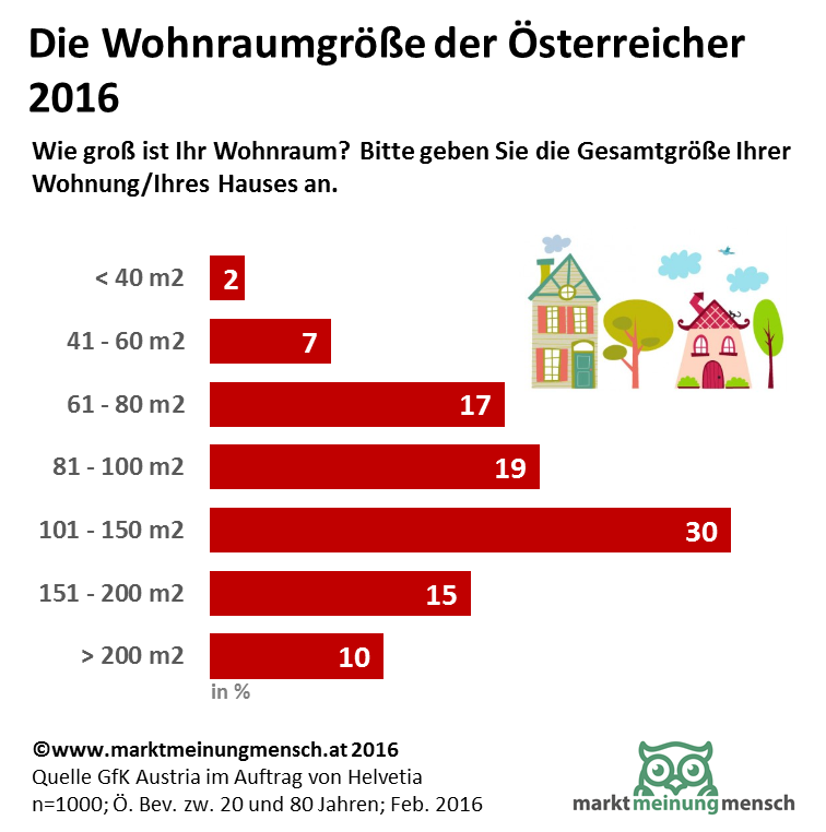 Die Wohnraumgröße der Wohnungen und Häuser der Österreicher 2016