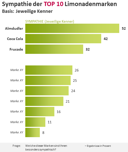 - GESTÜTZTE BEKANNTHEIT: „Nachfolgend finden Sie verschiedene Marken und Anbieter von Limonaden angeführt. Welche davon kennen Sie zumindest dem Namen nach?“