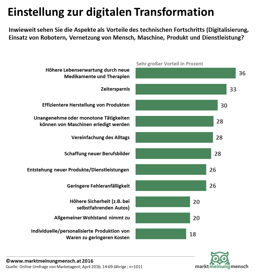 Die Studie zeigt, welche Einstellungen, Hoffnungen und Ängste die Österreicher mit dem technischen Fortschritt und der digitalen Transformation der Gesellschaft verbinden und welche Aspekte sie als Vor- oder Nachteile sehen.